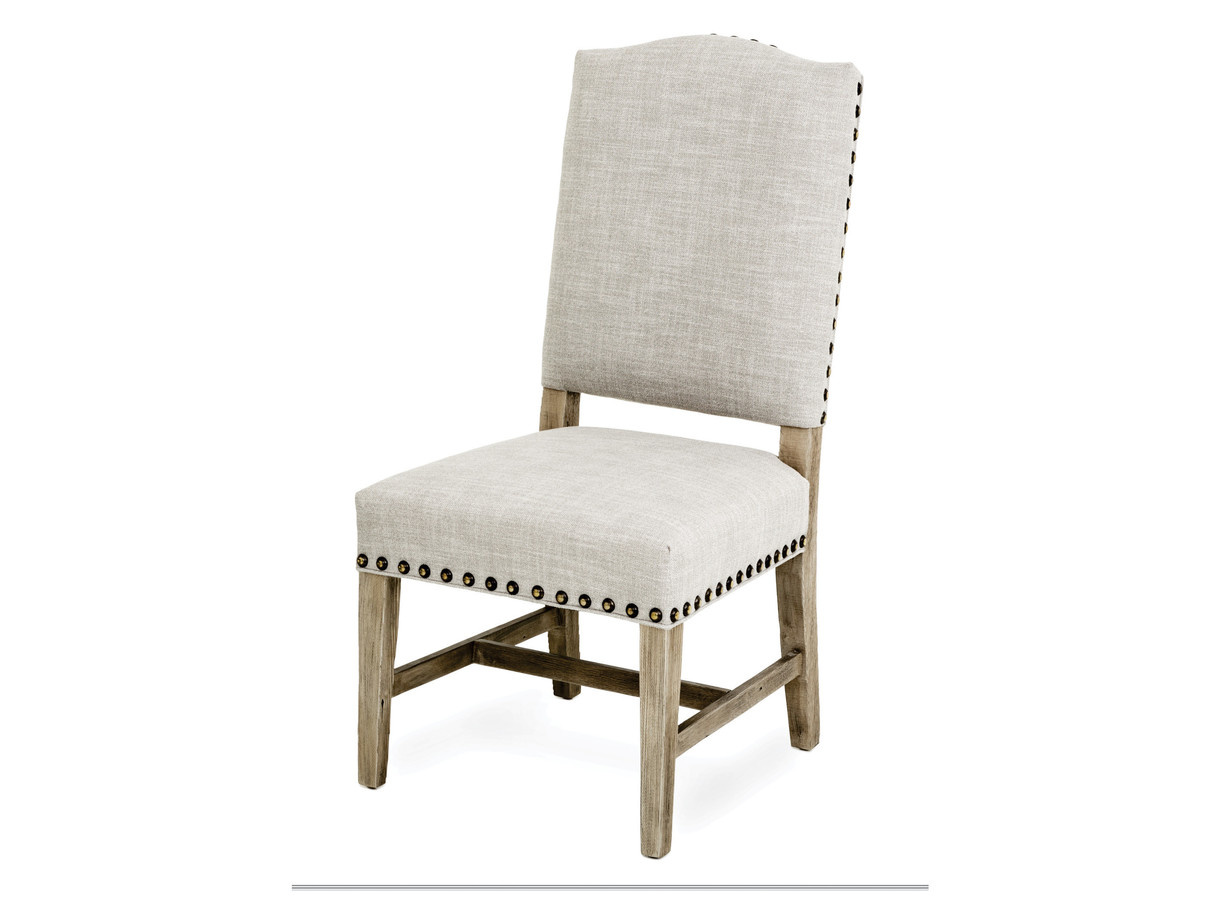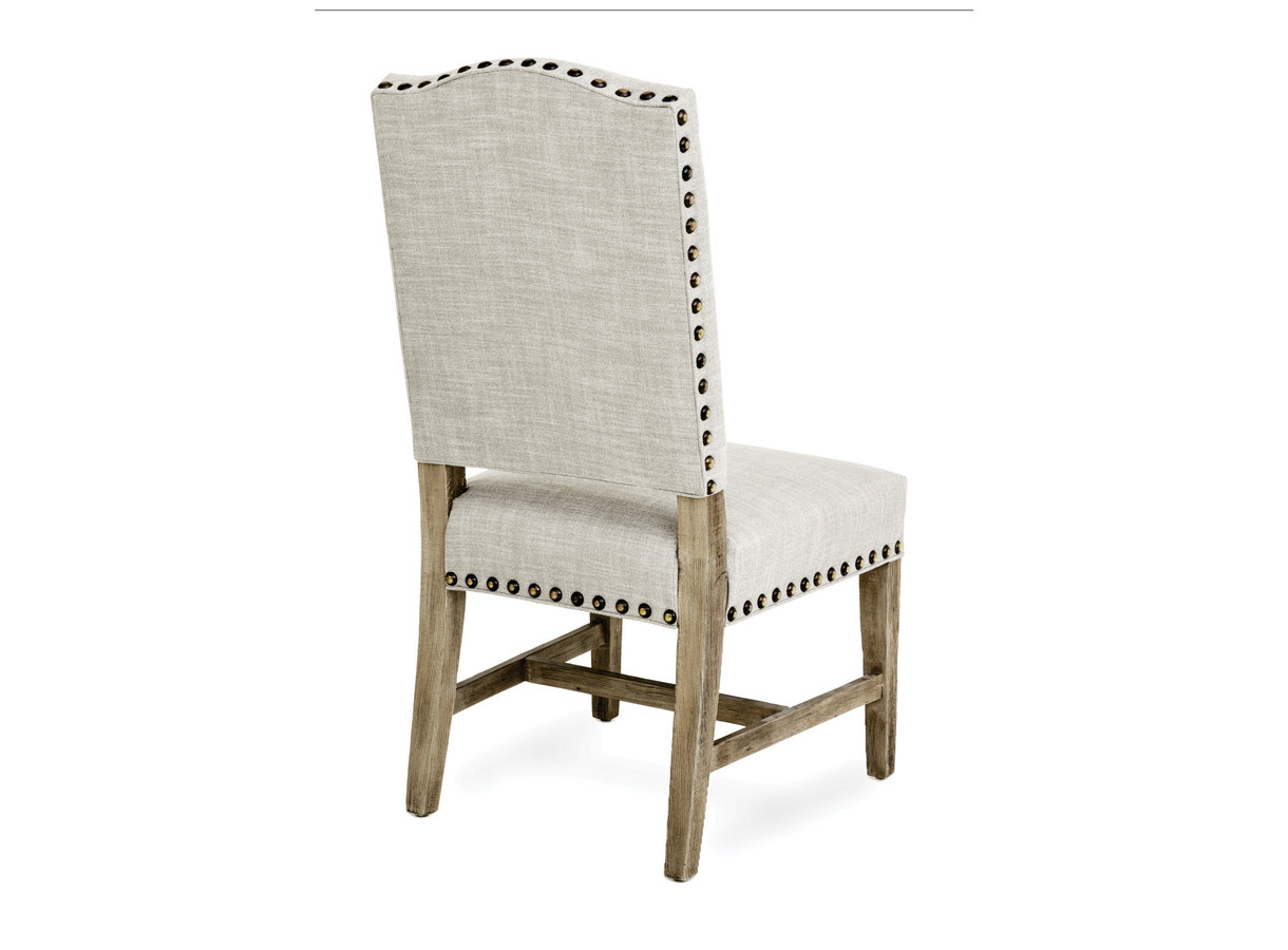 Our corsica has an old Palm springs or La Quinta flair to it. It is 43.5" high with a rounded top. To complete the California casual look we added a medium nailhead trim to the base and outside back.
