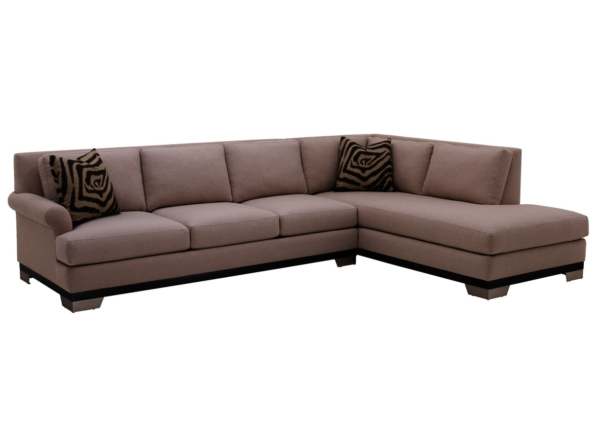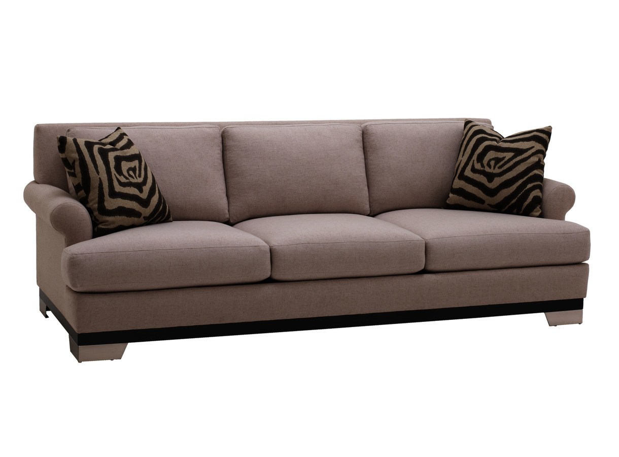 We feel this style is an elegant and contemporary look. It has a wood rail base with brushed chrome legs for added detail. The rounded arm is a smaller scale at 6" wide and recessed back. It is shown with 3 seat cushions with tufting and 3 back cushions.
