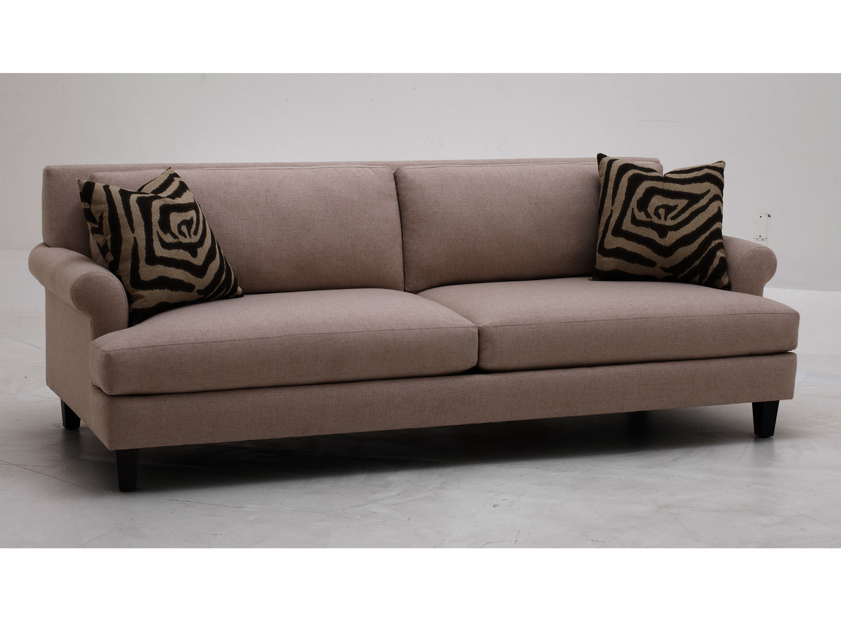 This clean line contemporary style adds the round arm look with 2 back over 2 seat cushions.